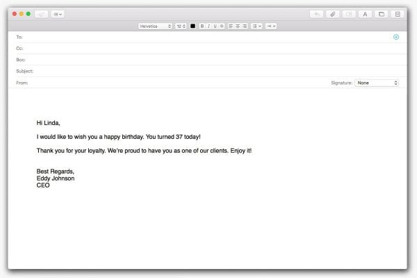 A simple shoutout, perhaps a happy birthday or a holiday email. This will build a stronger and closer relationship with your customer.