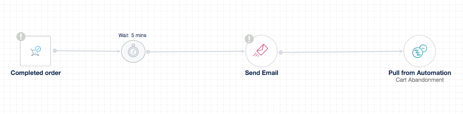 In this case, you should have a workflow which says that once they complete their order, you wait for a few minutes then send them a confirmation email with the details of the course and remove them from the cart abandonment automation.