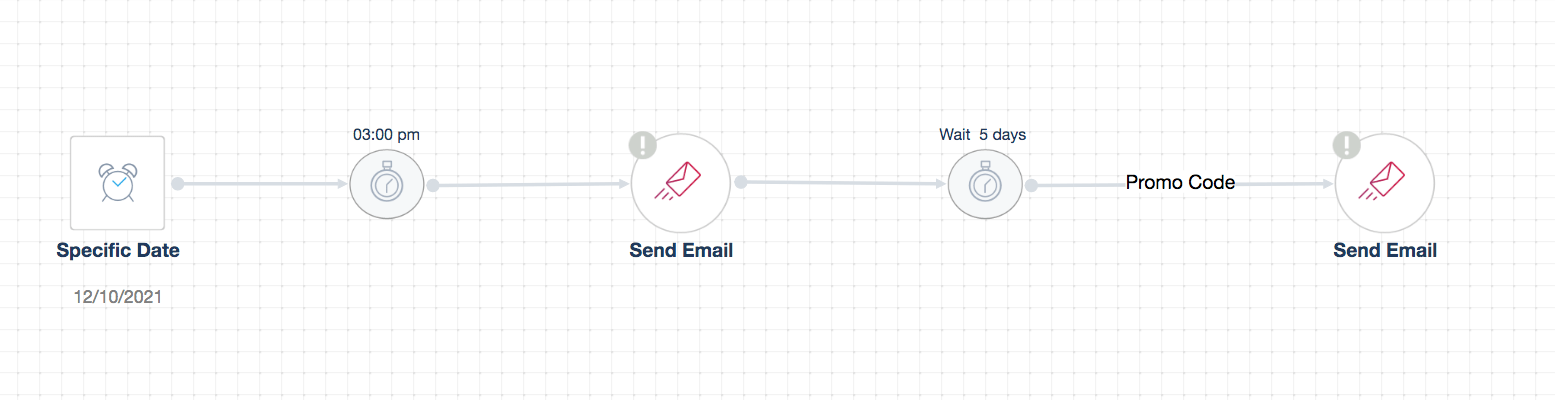 In order to find out whether or not they respond to your offer, you can create a coupon or promo code. Then, you set a five-day time delay before sending the next email; you also have to specify a condition that if “Promo Code is Not Redeemed”, send another email reminder.