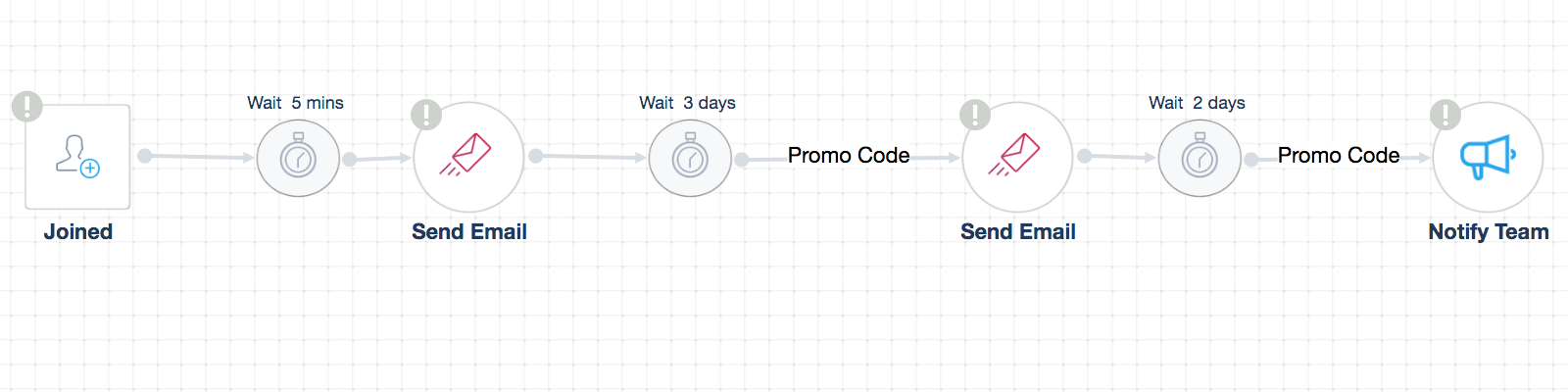 Then you can add a delay of three days and see whether or not they benefit from your offer so you can send them a reminder to push them to take advantage of it, wait a few more days then notify your team to contact them personally.