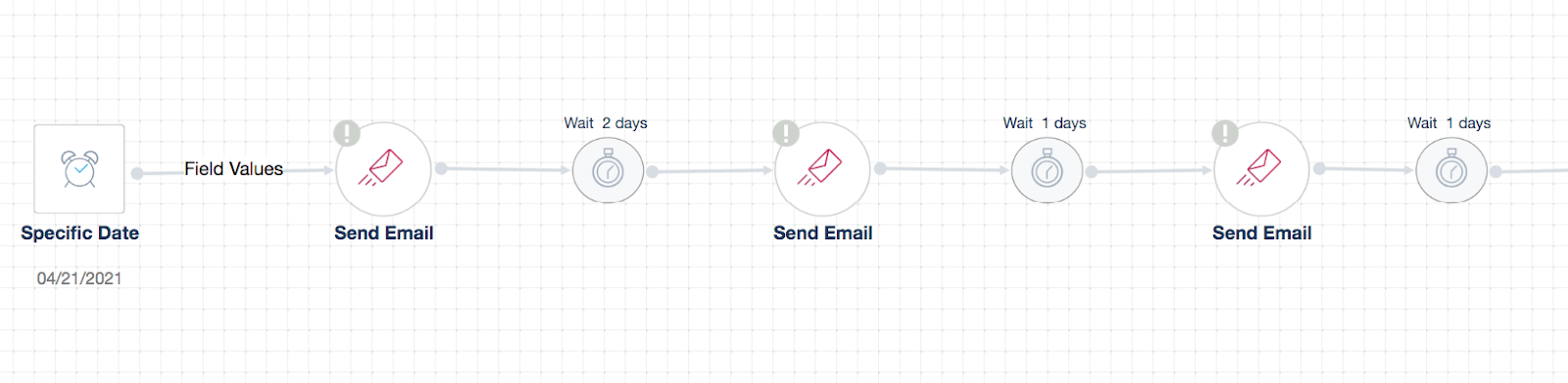 Then based on the specific date of travel, you can start sending out the first email and add one day delay or two between each email.