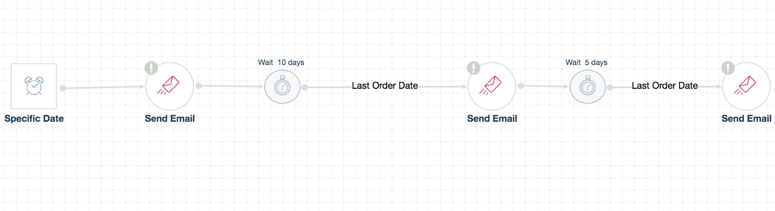 ** Note: You need to specify between the actions a condition which specifies that the last order date should be X days before today. You can choose the same delay that you initially set within your trigger.
